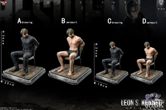 该手办最大亮点是一款“被打伤、戴着手铐、只穿内裤的里昂”版本,明显面向最狂热的粉丝群体。当然,如果更偏好传统造型,也提供穿着完整服装的常规版本。手办提供两种尺寸:36厘米和24厘米,方便收藏者根据展示空间选择。较为大胆的版本起售价为172欧元(约合人民币约1200元左右)。